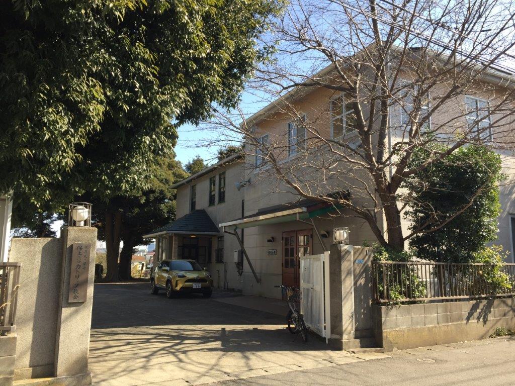 右手の奥が司祭館です。わからないことがあれば神父様、事務の方がおりますのでどうぞ声をかけてください。