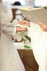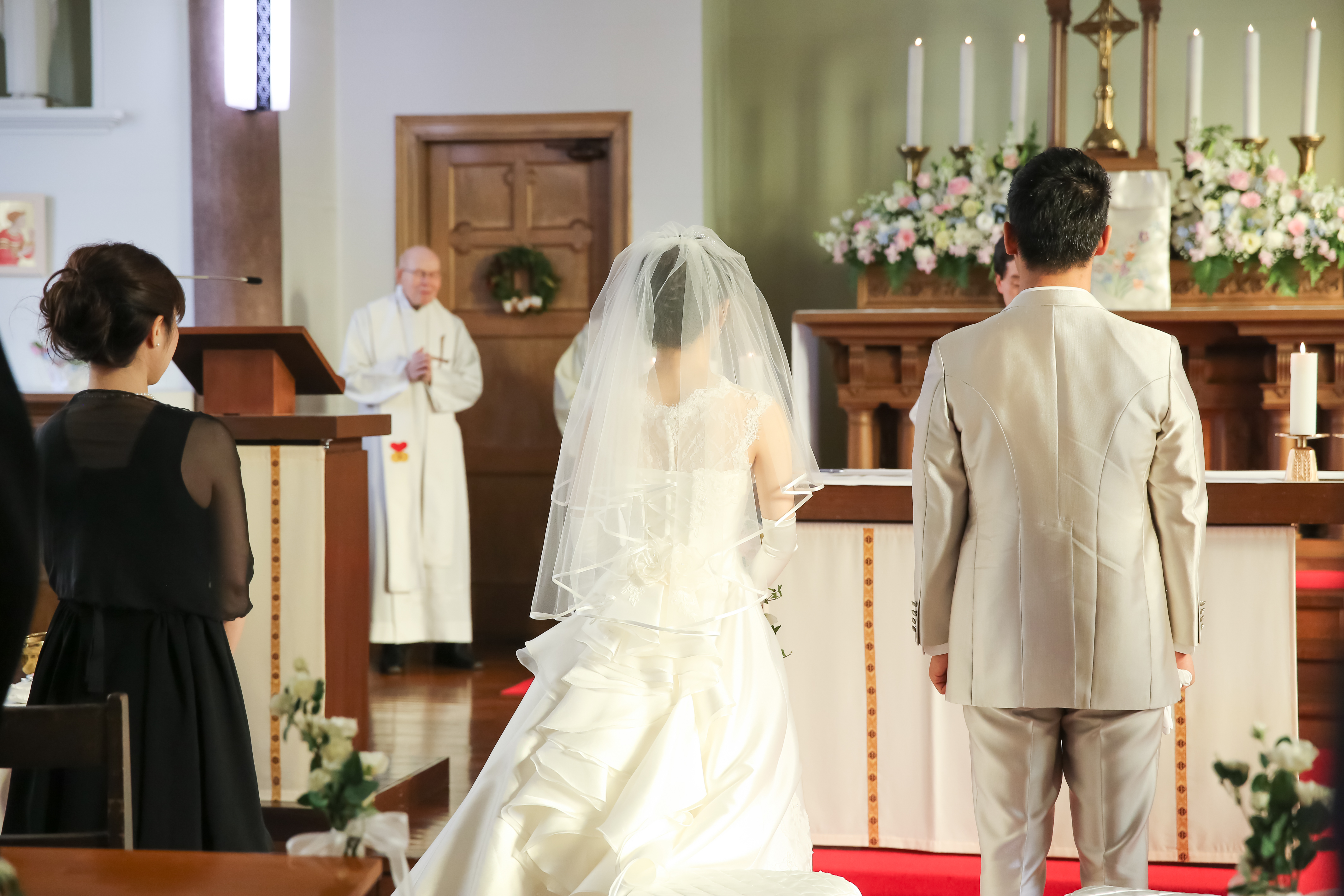 カトリック教会には、神様から特別な恵みを受けるしるしとして、「7つの秘跡」が制定されています。結婚も「婚姻の秘跡」として、とても神聖な神の恵みの満ち溢れる秘跡です。 「婚姻の秘跡」においては、配偶者同士が全能の神の前で、お互いに愛と忠実の誓いを立て、生涯にわたって夫婦として歩んでいく誓約をします。したがって、結婚とは神の前で教会において行われる神との契約を意味しています。 本来、カトリック教会ではカトリック信者同士の結婚式しかできませんが、日本の教会はバチカンから特別許可を得ているので、信者同士の結婚式、どちらかがカトリック信者の結婚式、どちらもカトリックではない方の結婚式も執り行うことができます。 当教会では商業化された結婚式場では味わうことができない、本物の神様の家である聖堂での結婚式を挙げることができます。